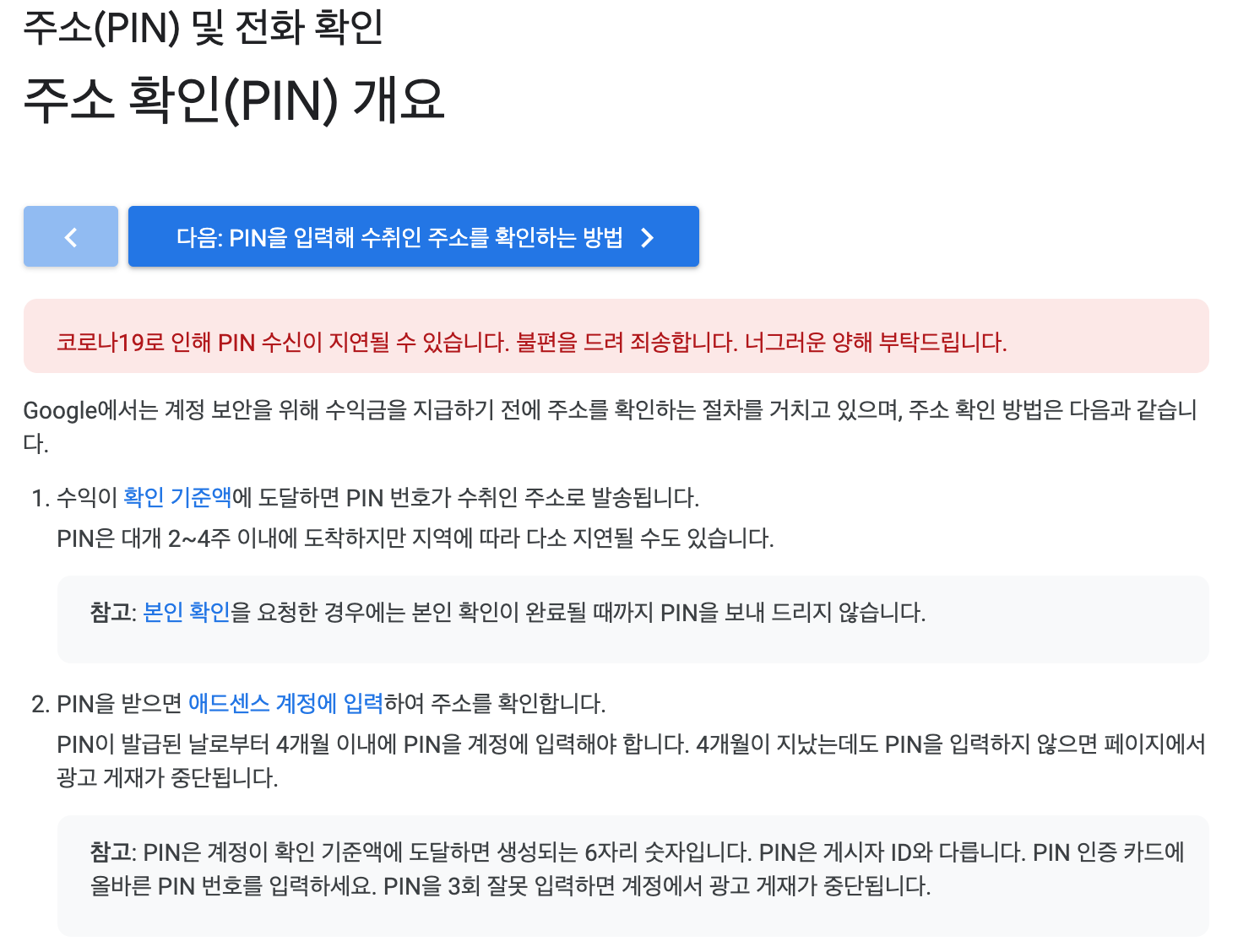 구글 애드센스 핀 번호 도착 및 입력 방법