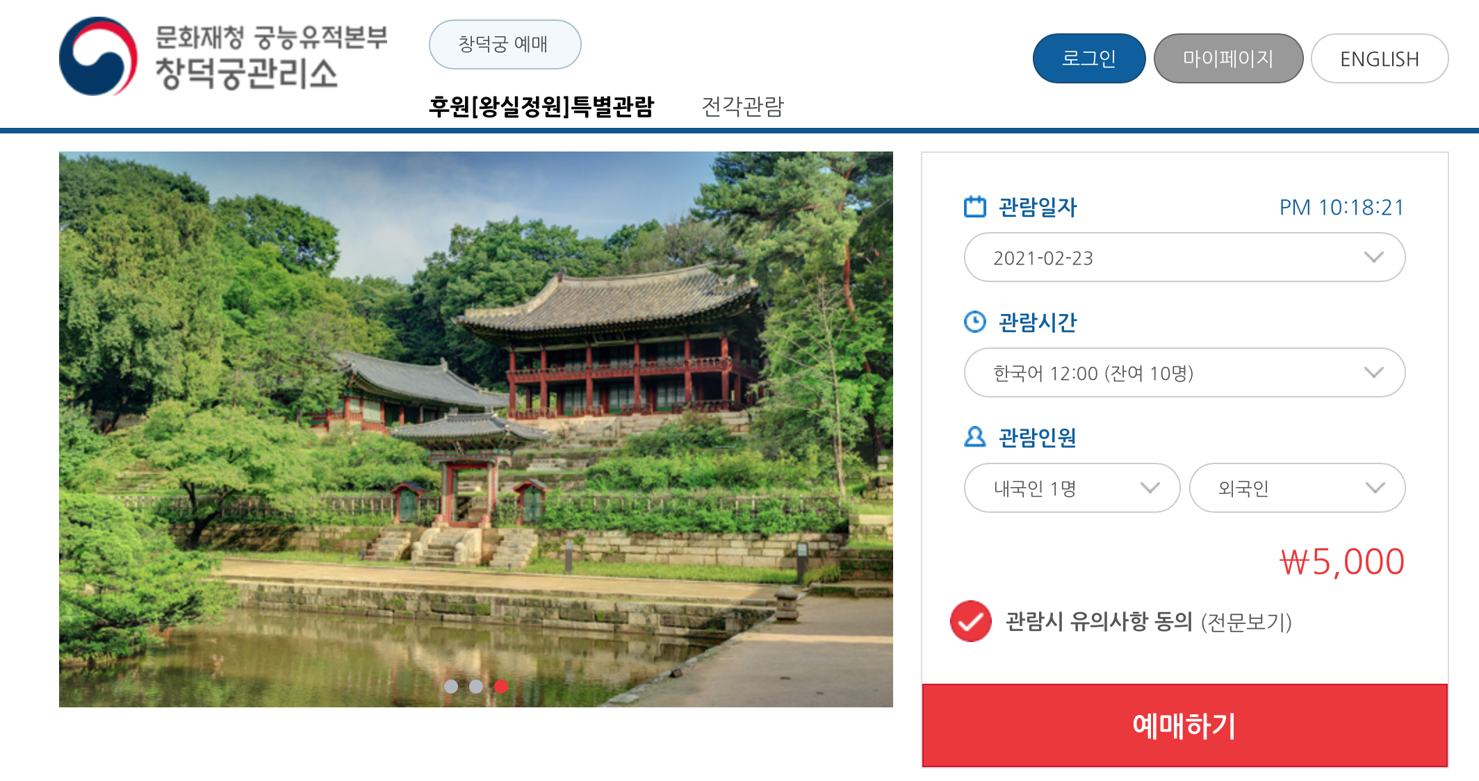 창덕궁 후원 예약방법