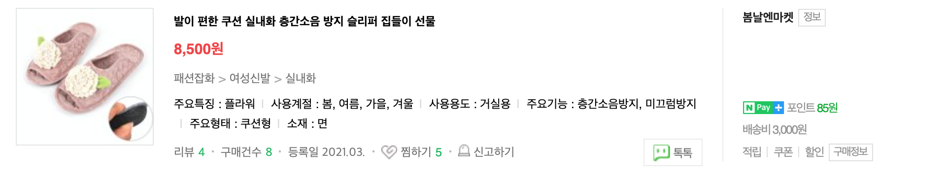 개인적으로 저희 와이프가 즐겨 신고 있는 실내화를 소개하고자 합니다. 국내에서 생산되고 바닥에 두툼한 쿠션이 함께 있어 굉장히 신기 편안하고 면 재질로 실내에서 신기 좋은 실내화입니다. 관심 있으신 분들은 아래 링크를 통해 구입도 가능하니 참고하시기 바랍니다.