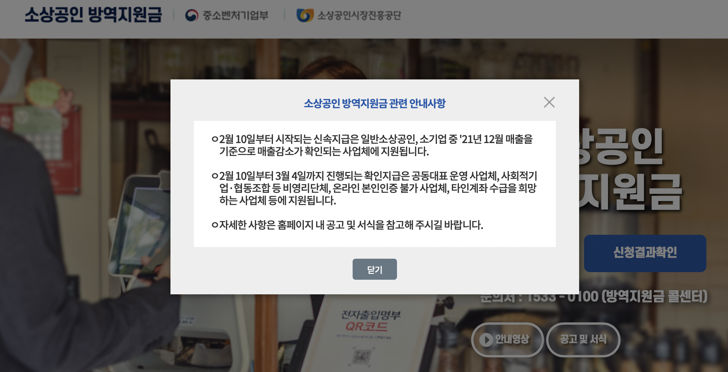 소상공인 방역지원금 소개, 신청하기, 신청결과 확인 등