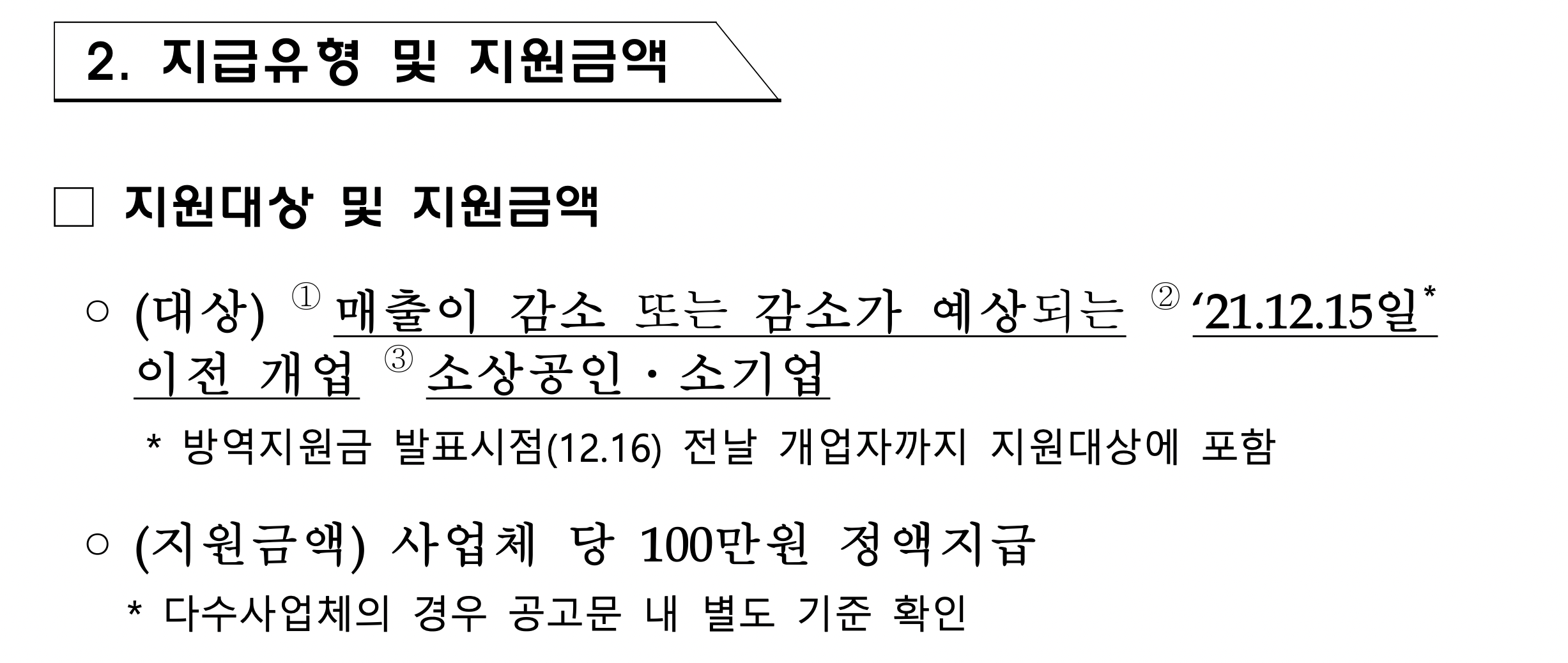 또한 이번 지원 대상은 매출이 감소 또는 감소가 예상되는 업체이어야 하며 100만원을 정액 지급하는 정부 지원사업입니다.