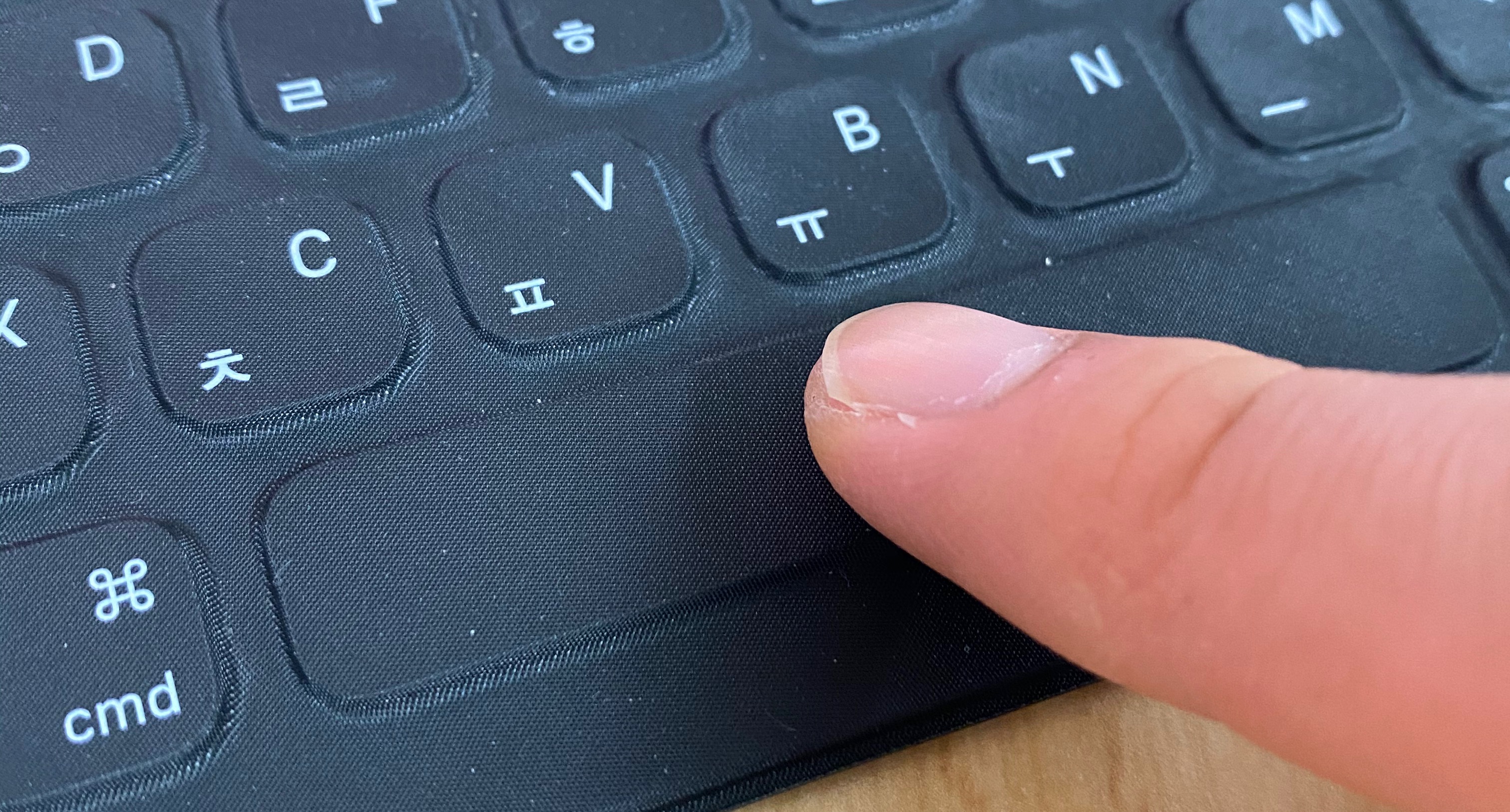 펼쳐보니 키보드가 나오고 무언가 벨벳같은 재질로 키보드 키들을 덮어 놓은 듯한 느낌이 듭니다.