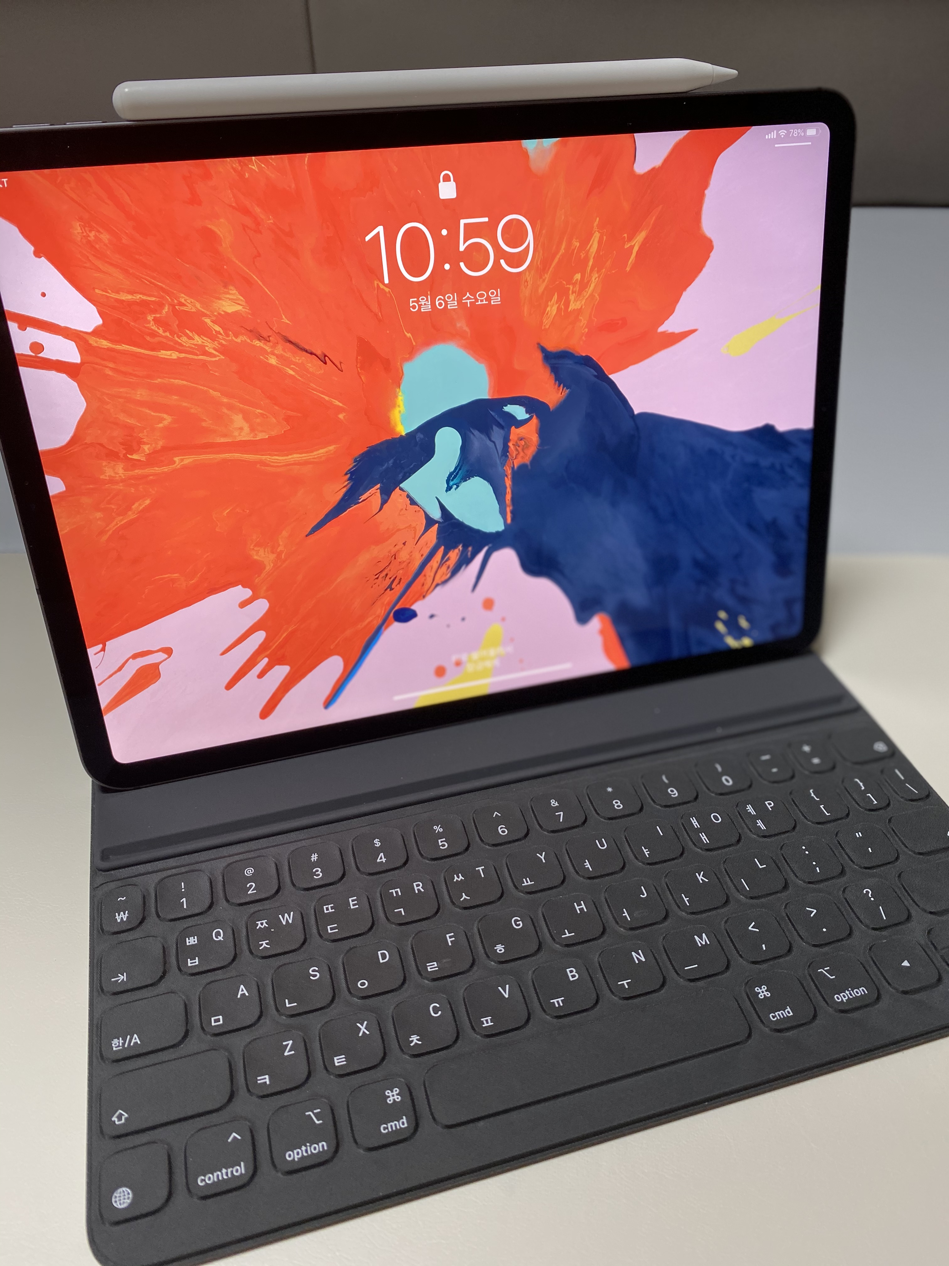 저는 아이패드와 애플 무선 매직키보드 1세대를 조합해서 사용하고 있었습니다. 사무실에서 배치하고 메세지도 쓰고 끄적끄적 글도 썼습니다. 애플의 매직키보드는 디자인 뿐만 아니라 성능도 타사 키보드 대비 좋다고 생각합니다. 다만 이동하거나 갑자기 무언가를 작성해야 할 때에는 아이패드 따로 키보드 따로 챙겨야 했습니다. 그런데 이번에 팀 이동을 하며 선물을 받을 수 있는 기회가 있어서 망설임 없이 스마트 키보드 폴리오를 선택했습니다. (신형 아이패드용 매직 키보드는 가격이 너무나 매직이고 저는 필기도 자주 해서 필기에 조금 더 용이한 폴리오 키보드를 선택했습니다.)