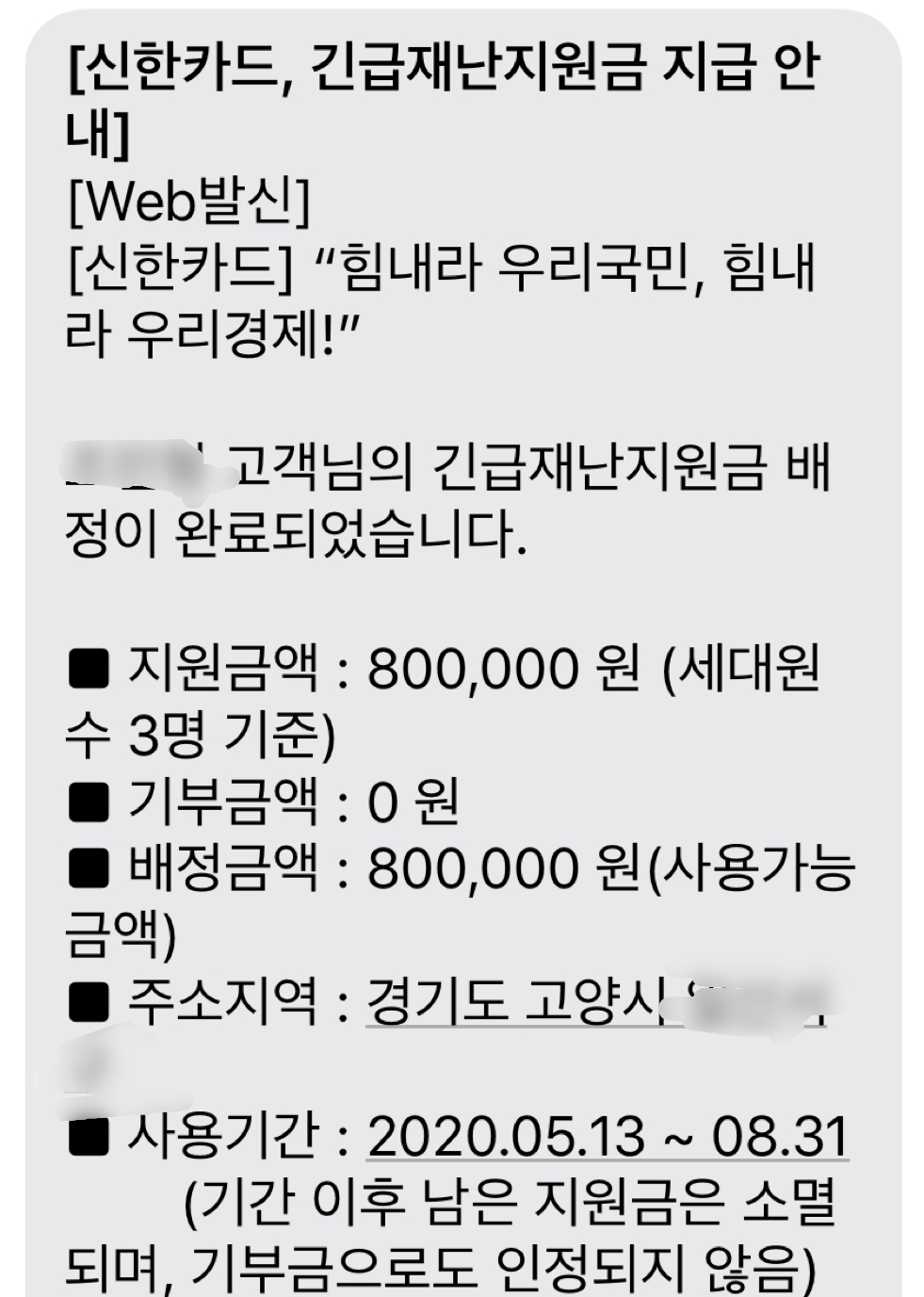 지원금을 신청하고 10분쯤 지나니 아래와 같은 문자가 왔습니다.