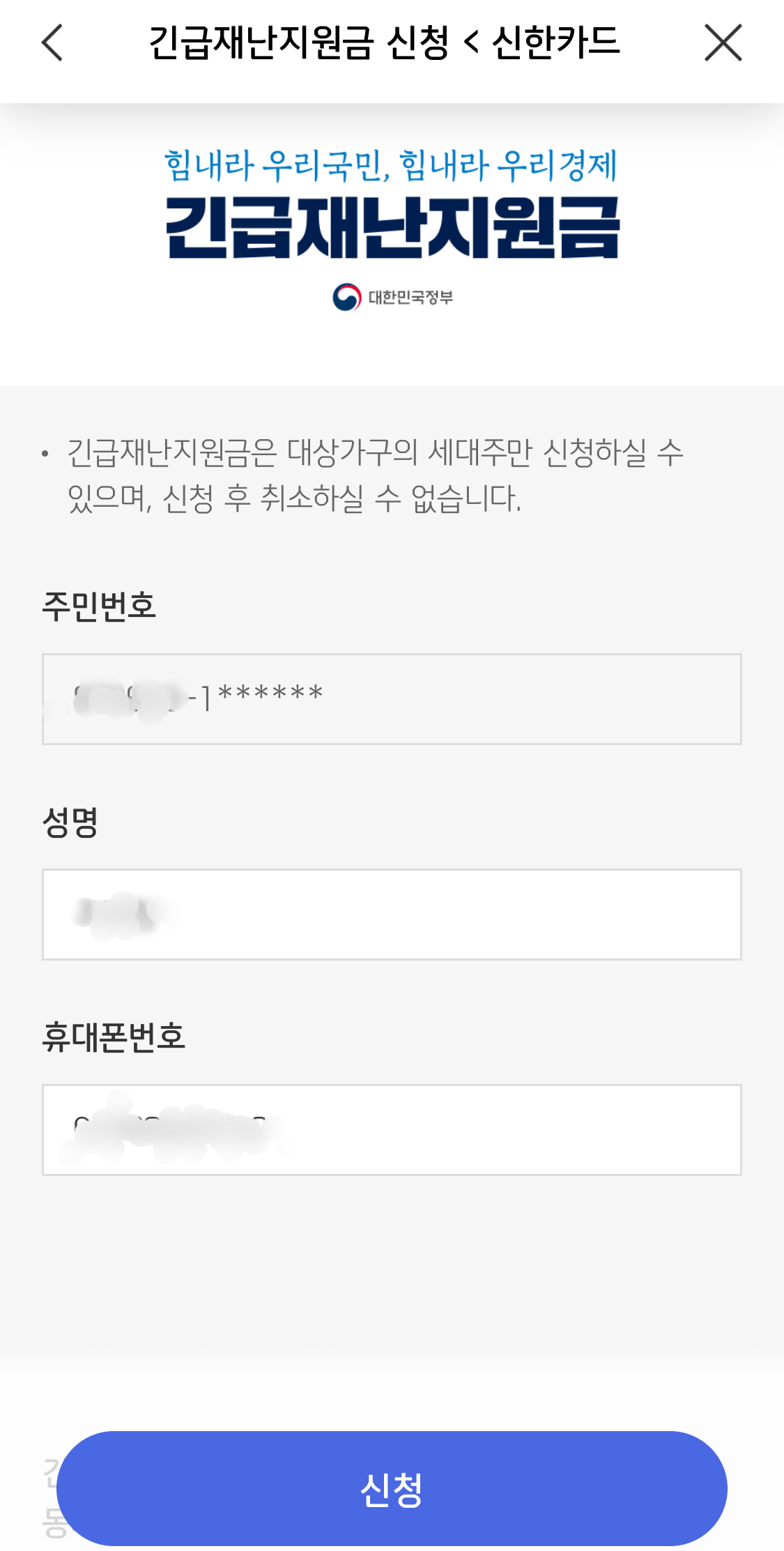 긴급재난지원금 신한카드 신한페이로 간편하게 신청하자!!