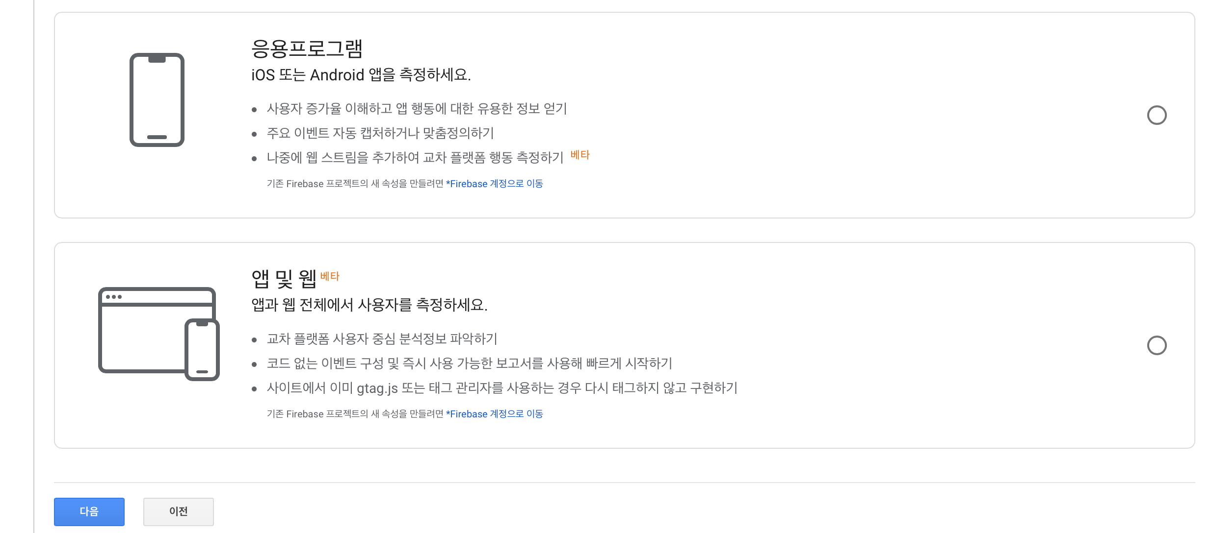 저는 제 티스토리 블로그를 등록할 것이기 때문에 웹을 선택하고 다음으로 넘어갑니다.