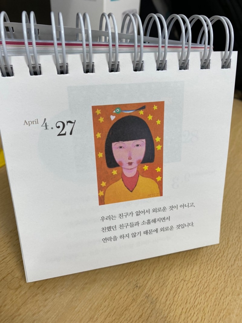 저는 매일 매일 출근해서 제 사무실에 있는 달력을 한장씩 뒤로 넘겨 오늘은 무슨 글귀가 있을까 하는 설렘으로 하루를 시작합니다.