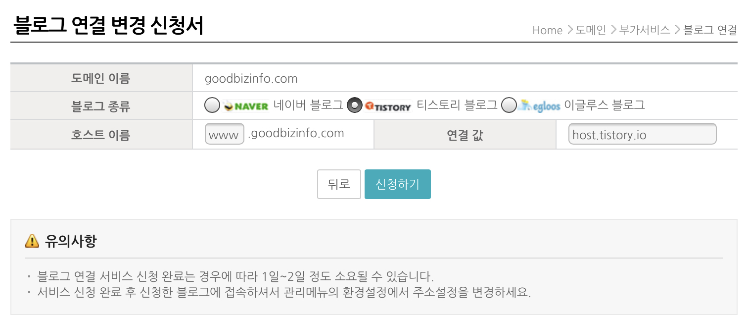 개인 도메인을 티스토리에 등록하는 방법