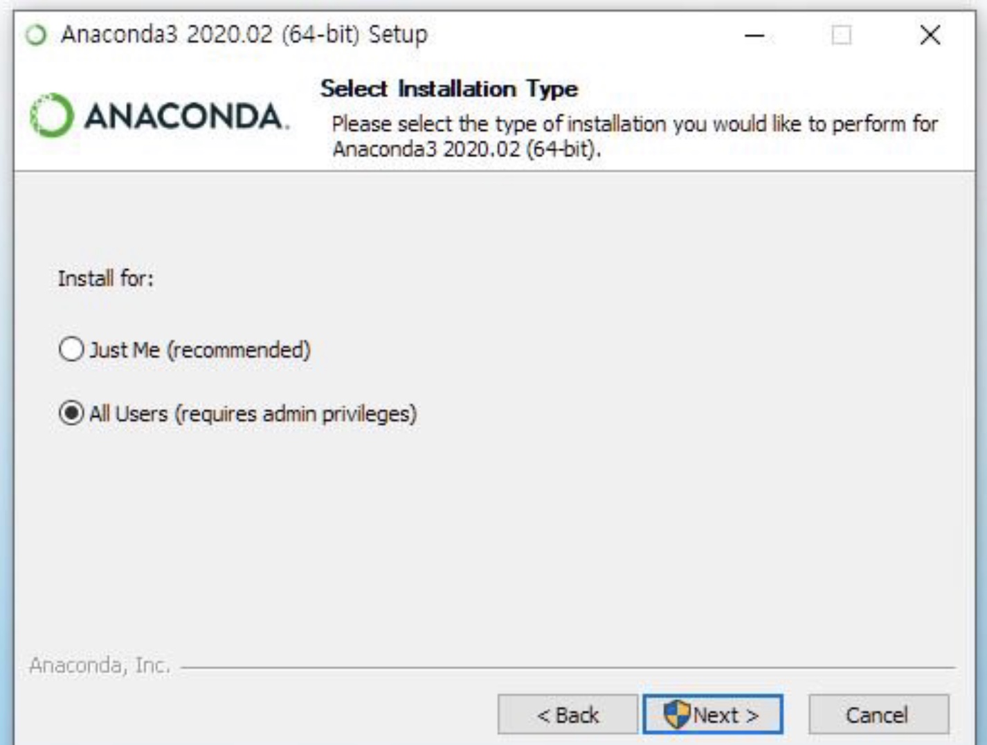 아나콘다를 설치할 경로를 정해줍니다. 저는 기본 설정으로 진행했습니다.
