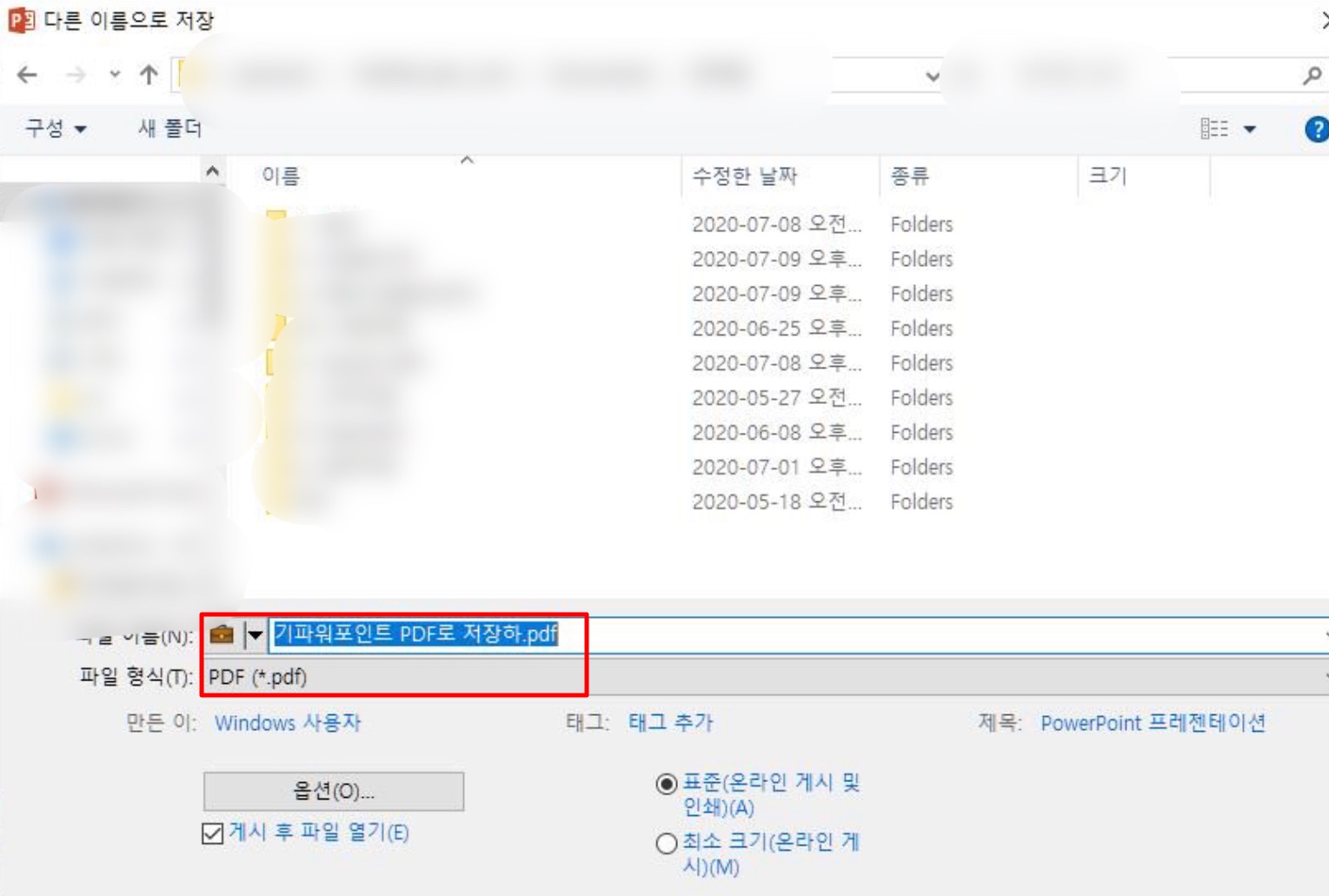 파워포인트, 워드, 엑셀 PDF 파일 저장 방법