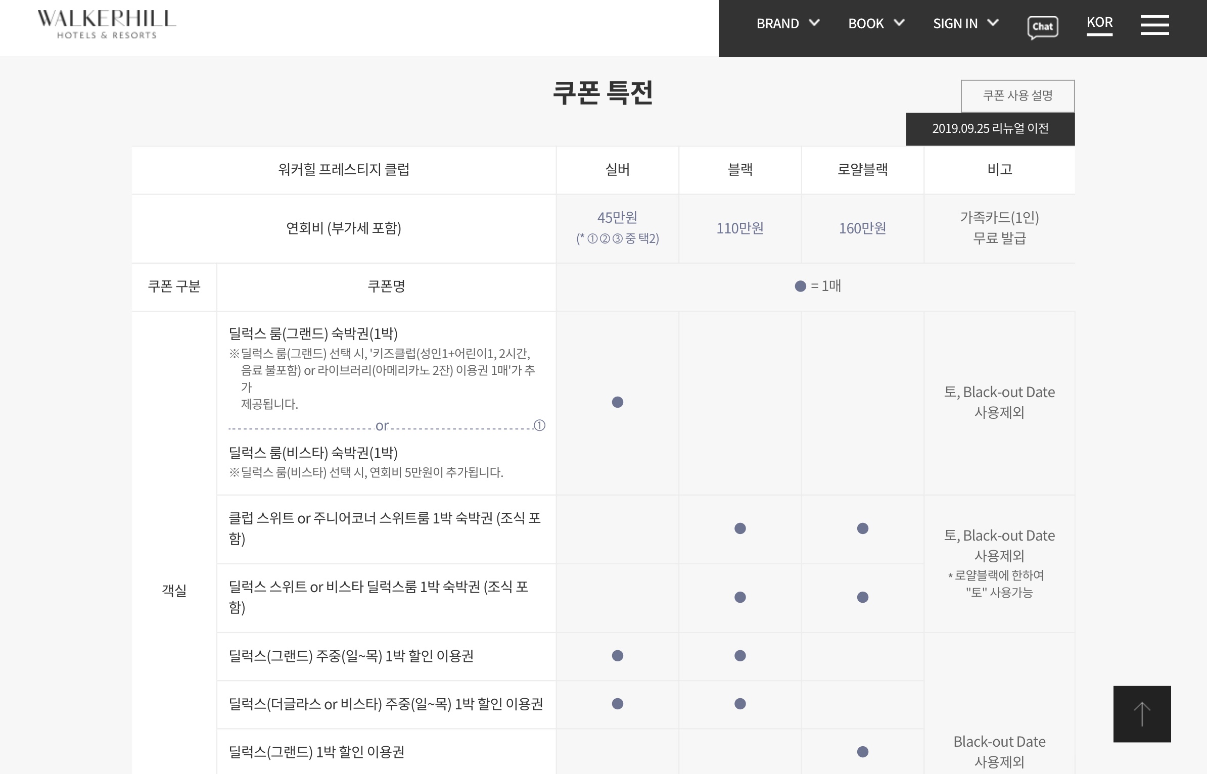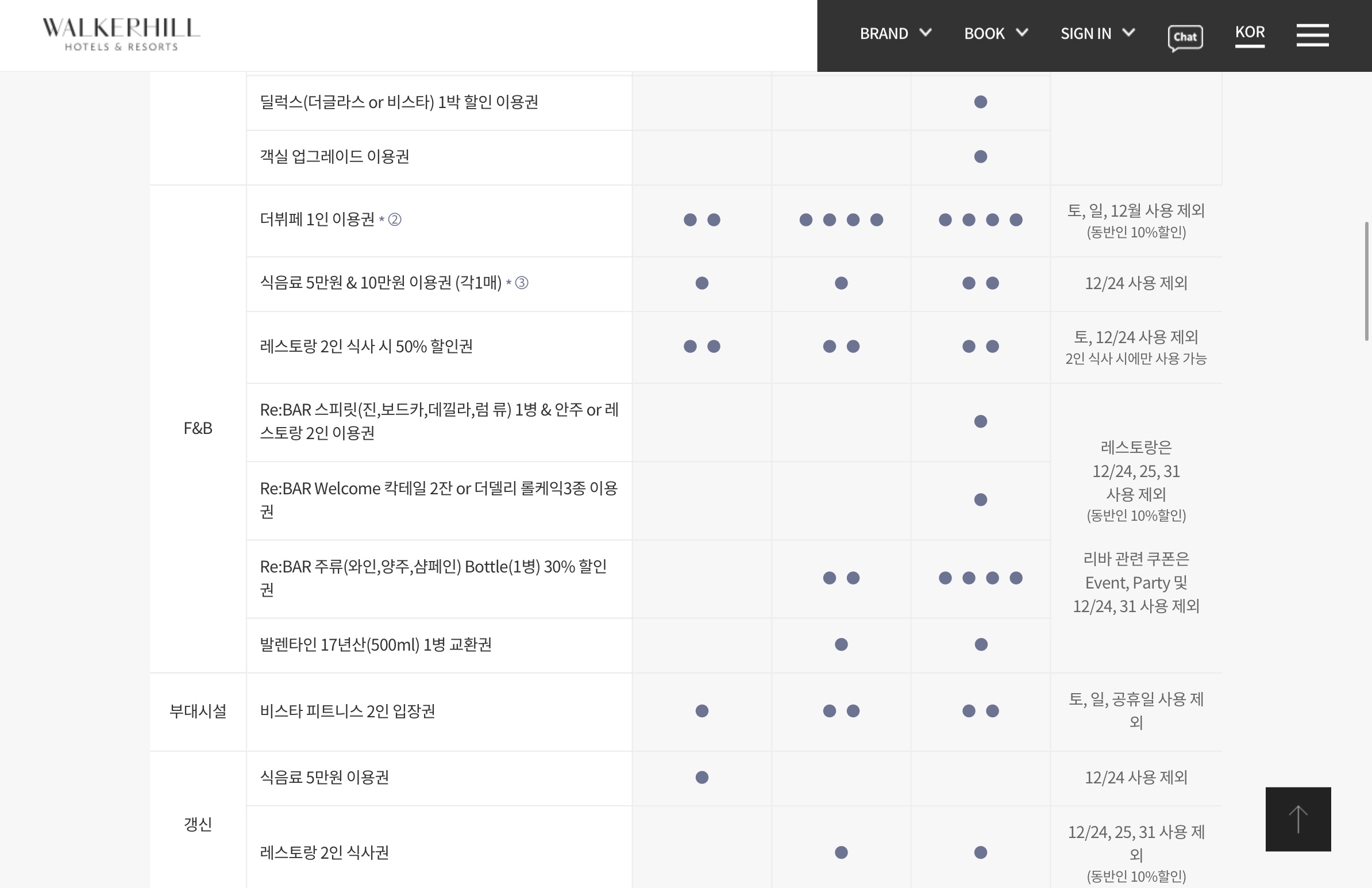 이 밖에 제가 워커힐 호텔 멤버쉽을 가입하게 된 결정적인 계기는 바로 아래 혜택 때문입니다.