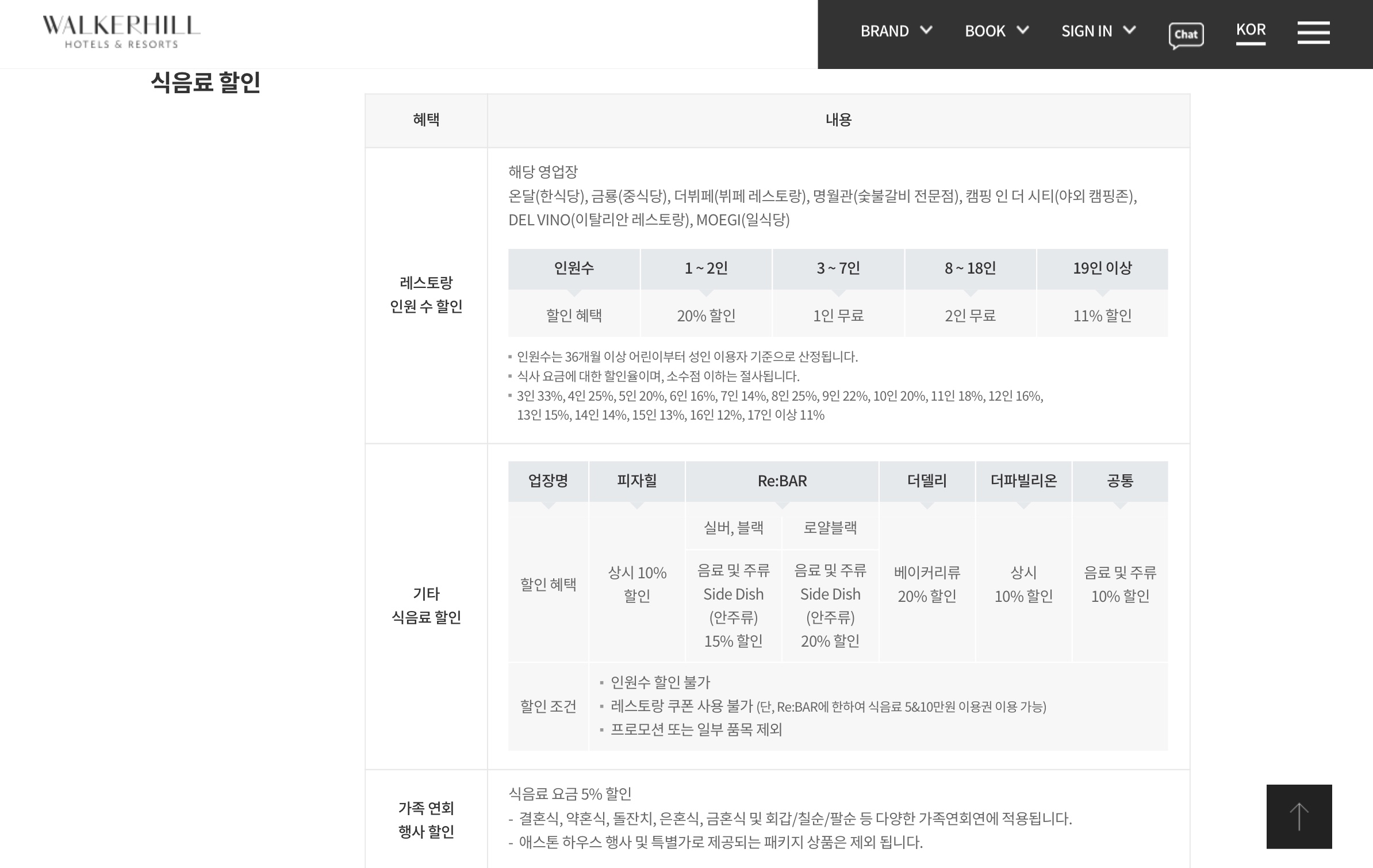 바로 레스토랑 이용 시, 인원수에 따라서 할인을 받을 수 있는데 돌잔치나 상견례 등 가족 행사가 예정되어 있는 분들은 멤버십이 완전 이득이 될 수 있습니다. 저 같은 경우에도 돌잔치를 하는데 10인 기준으로 2인 무료 혜택을 받아 굉장히 저렴하고 고급스럽게 돌잔치를 한 적이 있습니다. 저는 모에기라는 일식당에서 돌잔치를 했었고, 음식도 아주 맛있었습니다. 돌잔치를 계획하고 계신 분들은 위의 인원수에 따른 할인 혜택을 참고하시길 바랍니다. 그밖에 키즈 클럽 입장권 30% 할인도 아주 쏠쏠한 혜택으로 아이가 있으신 분들은 굉장히 유용하게 잘 사용하실 수 있을 거라고 생각합니다.