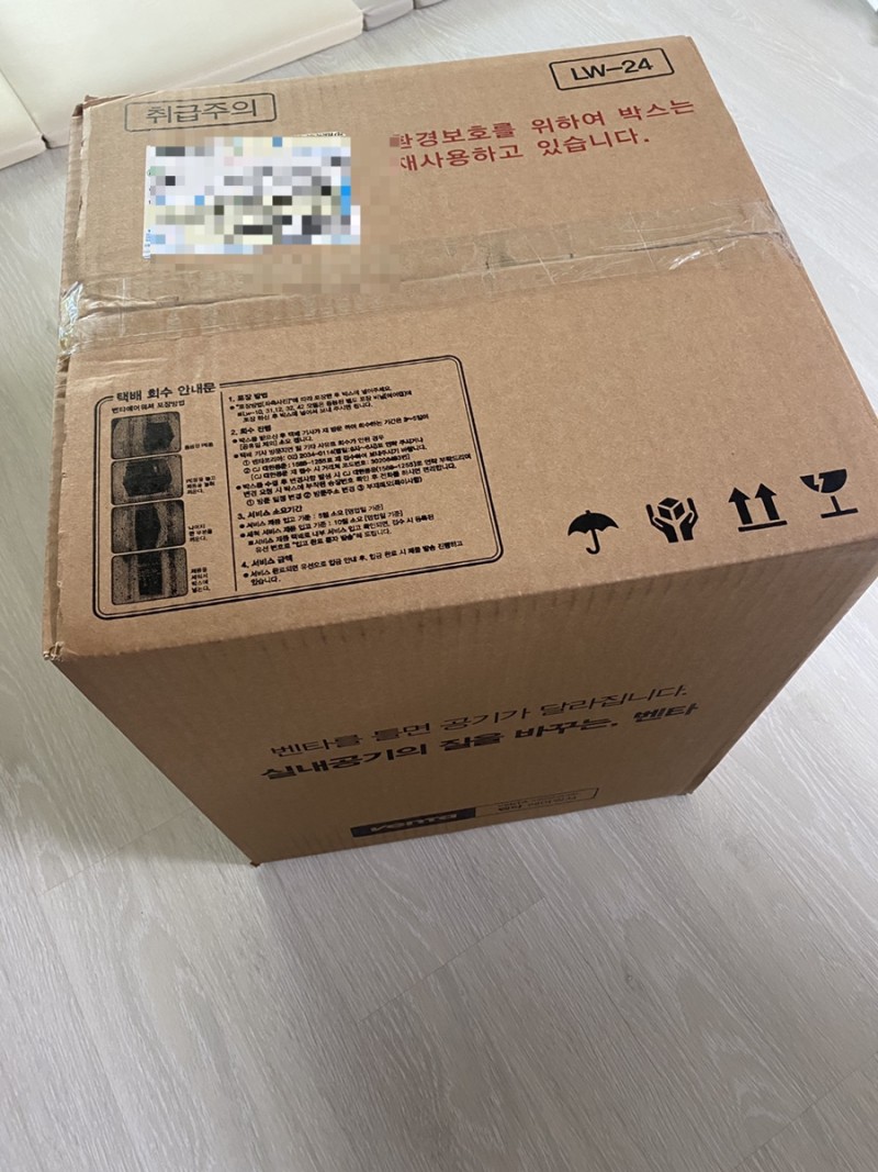 각 신청 모델마다 상자는 다르고 이 상자에 사용하던 제품을 보내면 세척 완료 후 다시 받아 볼 수 있습니다. 저희는 LW-25라는 모델을 사용하고 대한통운택배를 통해 배송을 받았습니다.