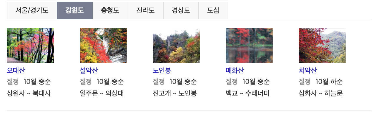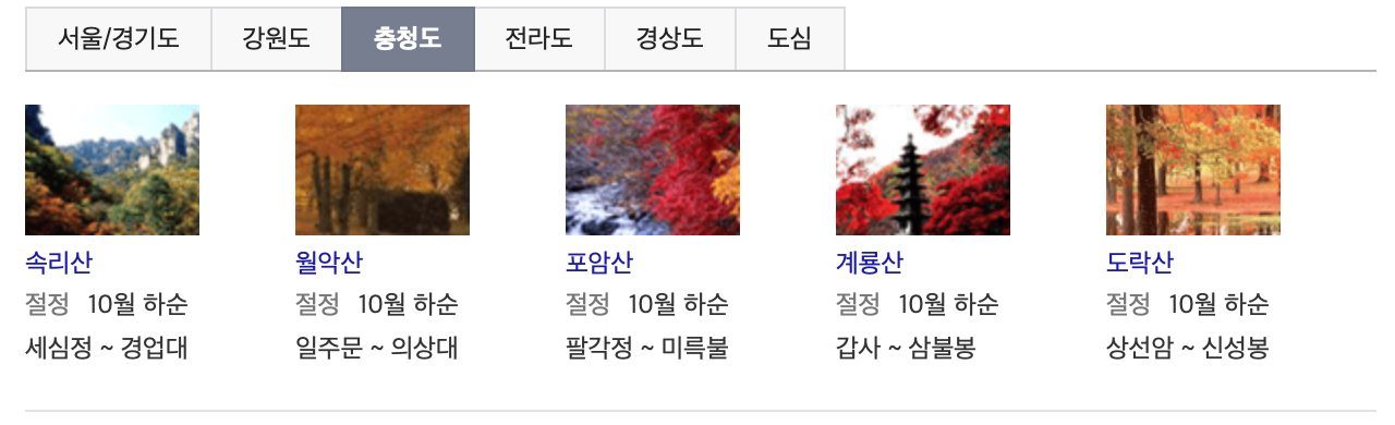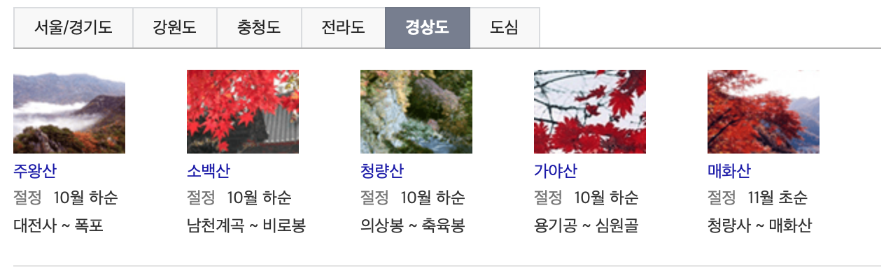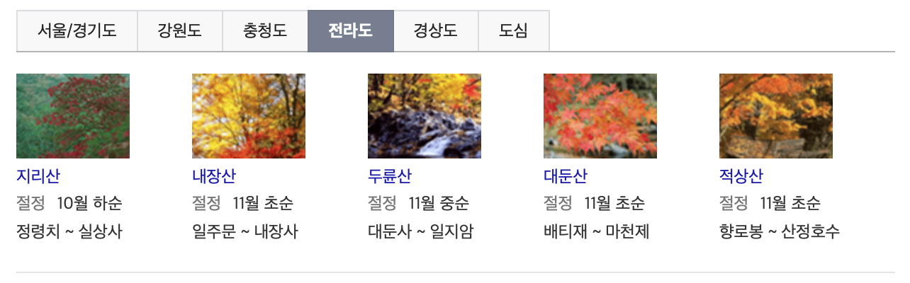 위의 자료를 보시면 단풍으로 유명한 명소도 자연스럽게 확인하실 수 있으며, 사회적 거리두기에 따라 상황이 달라지긴 하겠지만 미리 방문하고자 하시는 지역의 맛집이나 숙소를 알아보시는것도 도움이 될 것 같습니다. 단풍으로 유명한 지역은 미리 서두르셔야 할 것 같습니다.